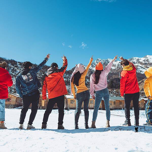 Day2,米亚罗-鹧鸪山-成都 今天是最好玩的一天,早上我们8点酒店出发,行车30min,到达鹧鸪山景区大门,(到的早不用排队取票),到了鹧鸪山停车,取票,中转车(10min)到达鹧鸪山核心景区,冰雪世界 鹧鸪山门票68/人,中转车40/人,这些都是必须的花费,到景区后,雪很厚,阳光还没照射到这片 土地,所以非常的冷,反之就很暖和,一点都不冷 我们到的早,直接就去滑雪了,直接上单板,我10分钟学会了单板的简单滑雪,敢于站起来就是第一步,第二部布就缓缓下滑,第三步往往都是摔屁股,😂。 我们滑雪滑了两小时左右,就出来游玩拍照摆拍了,光玩雪不行还是需要拍点装逼的照片,(见下图)下午两点,出发回成都,吃个火锅▹其实这是个摆拍,哈哈哈▹第一步是撒,要勇敢站起来,然后噗站起来,噗的就摔倒了▹潇潇网红在飞他的无人机▹不知道冷,一个劲的扣雪,看到照片,觉得冷一会,还是值得▹怎能不好好利用景区提供的滑雪道具▹最后来一张我们自驾的小团照片,右边的就是我