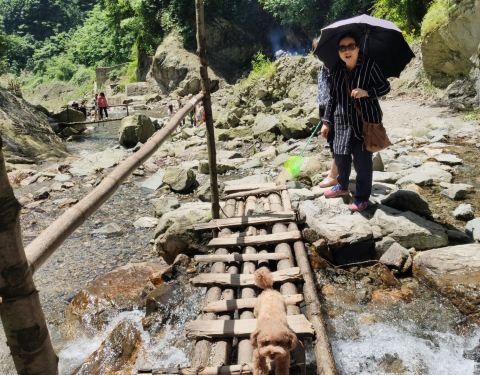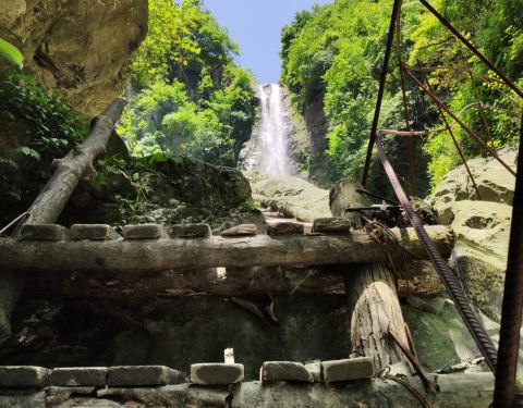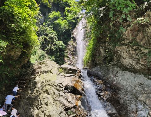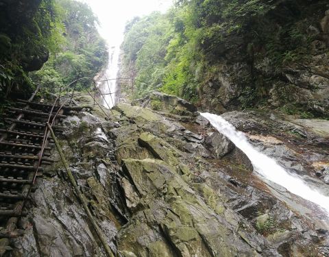 距离成都2小时车程,虽没有门票,但收取20 元停车费。沿着深山溪流往山里走,沿途都是鹅卵石路或简易木桥,不太好走。走到尽头有2处比较大的瀑布。溪流的水很冷,阴凉处也很凉快。是玩水、避暑的好地方。