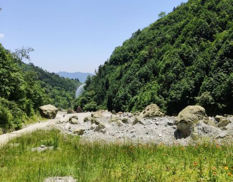 去之前看图还行,去了有点后悔,路比较窄刚好两车道吧,两个大巴错车需要找位置的路。说了交通说戏水,水温偏凉,河谷都是阳谷,无法直接躲避太阳,导致的结果就是人群高度集中,都是人耍什么,小孩玩水枪都要很注意不然就溅到别人了。个人觉得趣味性不好,无法避暑,玩水不好。 适合晚点来带个帐篷露营