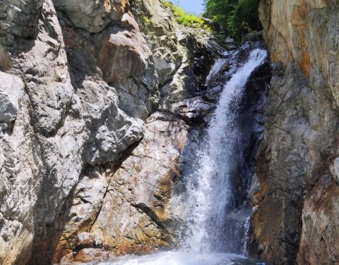 蟠龙谷景区地处湔江河上游,全年雨水充沛,森林覆盖率高,其水源清澈见底,分级而下,绵延幽深的山谷中,密布着大小上百道瀑布跌水,形成罕见的瀑布群奇观。