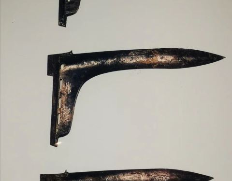 擂鼓墩曾侯乙墓除了出土了大型的编钟和编磬外,还有大量精美的高玉,这些雕琢各异的玉佩,环环相扣,竟然是是用一块整玉雕琢打磨而成的……。战国年代,诸侯争霸,战事连绵不断,戟是当时步兵常用的冷兵器,对付骑兵、马拉的战车非常有效。这次在擂鼓墩博物馆看到一把“殳”(读shu输)头,非常好奇,经当年参加发掘的考古教授讲解,才搞清楚冷兵器“殳”的用途。殳头呈现三棱矛状,刃部铸篆字铭文,字体细若针刺;是战车上兵者的武器,配上长长的木柄,战车在冲锋陷阵时就会所向无敌哦!