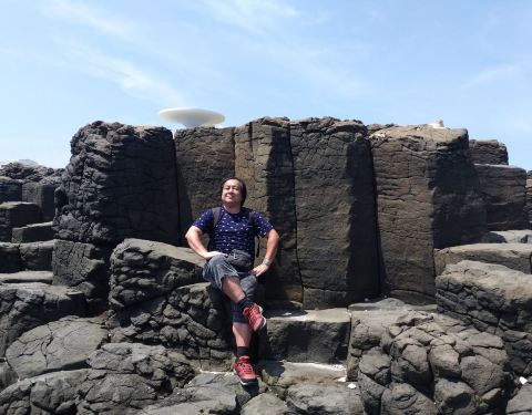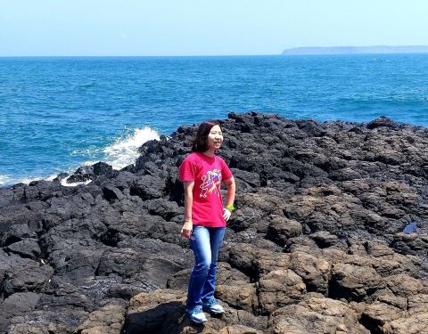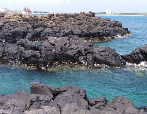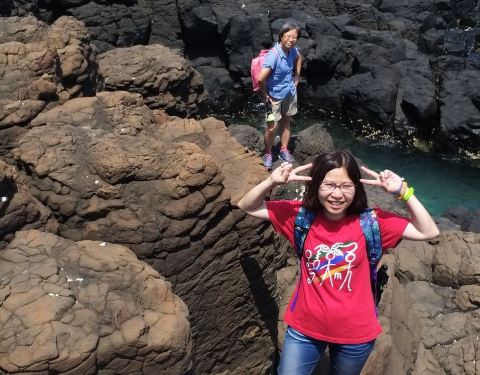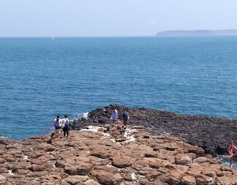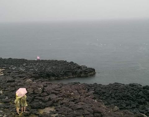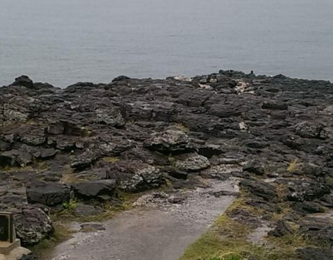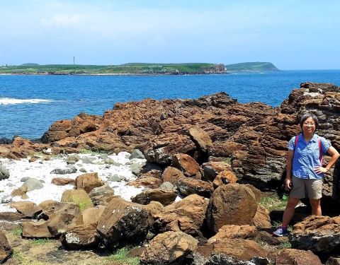 ...方,一直听引浪拍上岸的声音,因為是玄武岩岸,声音特別响亮,天候不佳時千萬別靠近海岸線,会被捲走