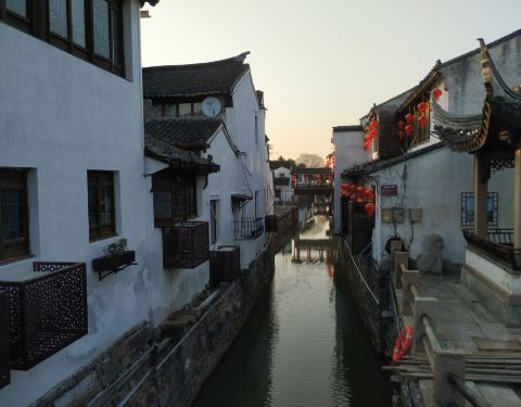 离苏州火车很近,过来一站地铁路。没有平江路大,更小家碧玉,白墙绿瓦红灯笼,还有小桥流水酒吧,慢慢逛,很惬意!!