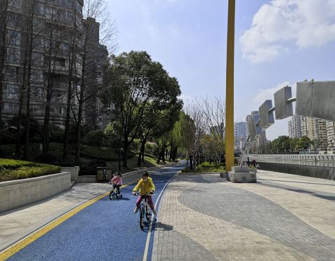 ...样,这次是偶然经过才发现这么座桥,苏州河南岸的健身步道建设得很好,有很多居民在这里遛狗锻炼聊天