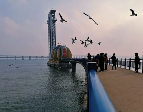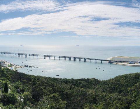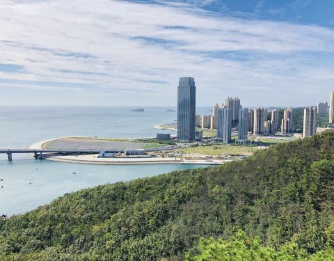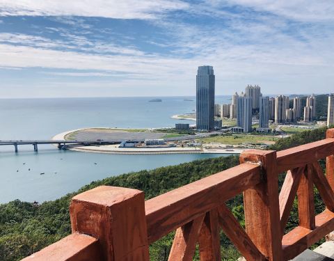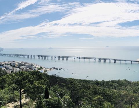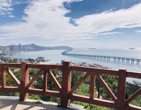 登山望远,景色尽揽!蓝色大海,玉带大桥!