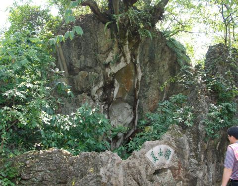 是天星桥景区里面的一个景点。 这边挺多榕树的,有的树根露在石头外面,互相交缠,再加上一些想象脑补,就成为一个小景点啦。 我感觉人形不是特别明显,在导游的指导之下,能看出来人形。 还挺有意思的。