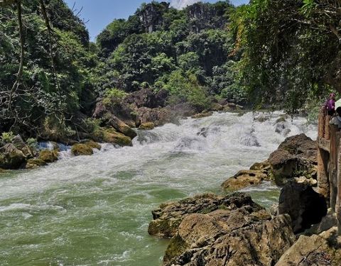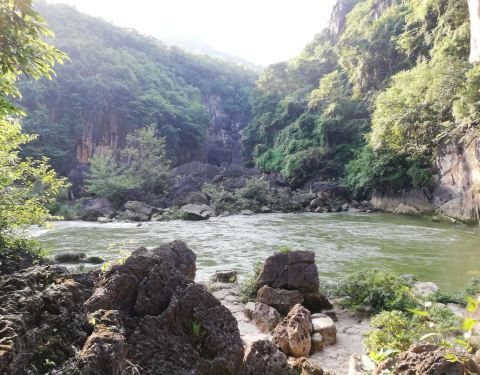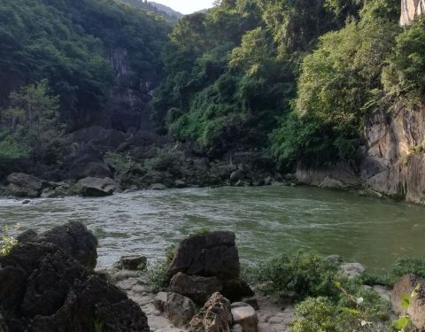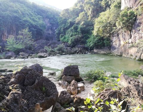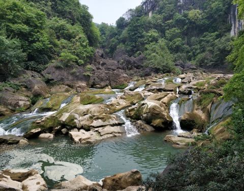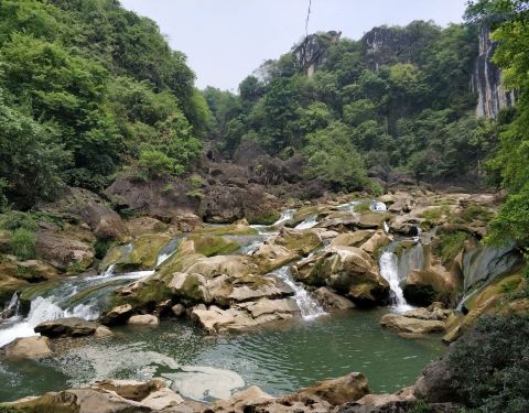在天星桥景区玩好出洞之后,就能看到冒水潭了,冒水潭在桥上桥上桥下面,天星洞出口,乱石丛由于高低不平,流水便有了瀑布的形态,众多小瀑布又构成壮丽的气势。