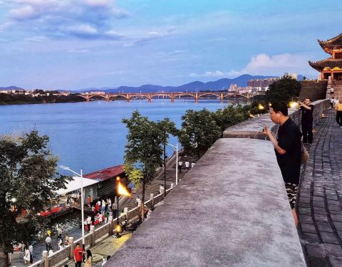 名称由来已久,据说是抄袭古代隋唐时期东都洛阳的东门,至于那个怎么来的就不得而知了。我总觉得堂堂正门用个春字有些不够阳刚。城门可以免费登上,不算高,箭楼是重修的,但城砖看得出是数百年古物,登楼可以俯视涛涛赣江水和古浮桥。