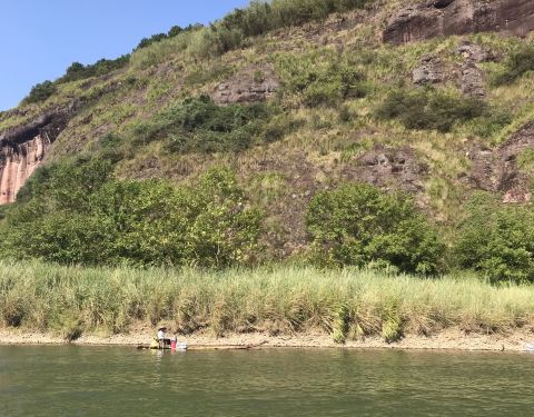龙虎山风景区门票价格包含了泸溪湖漂流,上午排队的人非常非常多,所以我们选择了下午两点之后再去,这个决定非常明智,虽然说是十一黄金周期间,但是还是很快就坐上了竹筏,竹筏上的大叔非常幽默诙谐搞笑,段子都是信手拈来,嘿嘿!两岸湖光山色,美景尽收眼底,各座山峰都有不同的传说,秋意盎然的季节非常适合去龙虎山风景区旅游!
