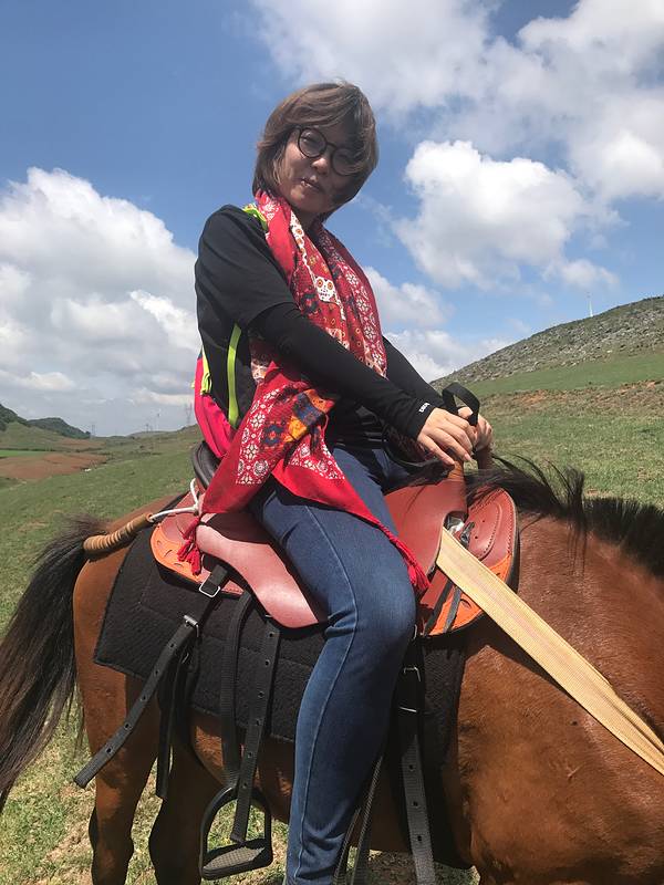 现实,怎么说呢,和计划有点一样,也...出行前,我和刘老师讲,我想去舍得草场,得包车去,有点远,他说行。我是这么计划的,在一片鲜花绿草的大草原上,郑小婕骑着一匹高头大马,纵横驰骋,天下之大,待我闯一闯。