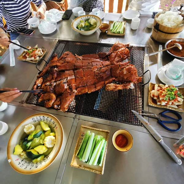 另外还有拼车的有4个人,一起点了一只烤猪~~~超级香呀~~~~还有有人一起拼,不然两个人根本吃不完那么多舍得草场有很多当地农民在放牛放羊大紫明宫下午司机直接把我们送到高铁站。