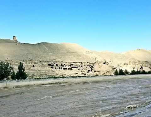 下了摆渡车又开始转大巴车,坐在大巴车静静看着风景回味莫高窟