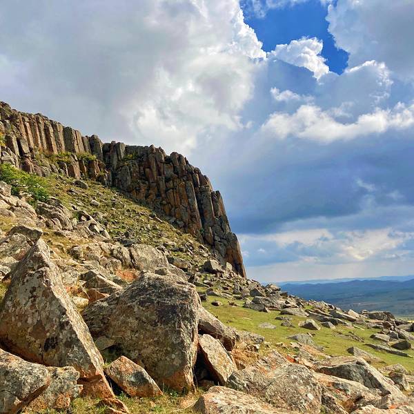 登上过《中国家地理》的封面。这是一个野景点,位于太仆寺旗西侧大约10分钟车程距离,路上会经过一大片向日葵地。村子里的土路可直通到山脚下,但极其难走只有越野车和大型SUV能通过。我国七大火山岩石柱群之一,主山体就是由一根一根垂直的石柱组成,是火山喷发凝结而成,周围是比较辽阔的草原和庄稼地,山峰可上,绕一周大约1小时,山背后还有一些比较小规模的石柱群,但形状不是很明显,偶尔可以遇到放牧的牛马群。