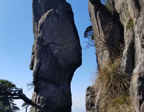 马头石是三清山栈道上的一处景点,离玉女开怀和一线天不远。回头看见栈道上一块巨石,根据介绍的描述,还真的有些像一个马头,挺有意思的一处小景点。