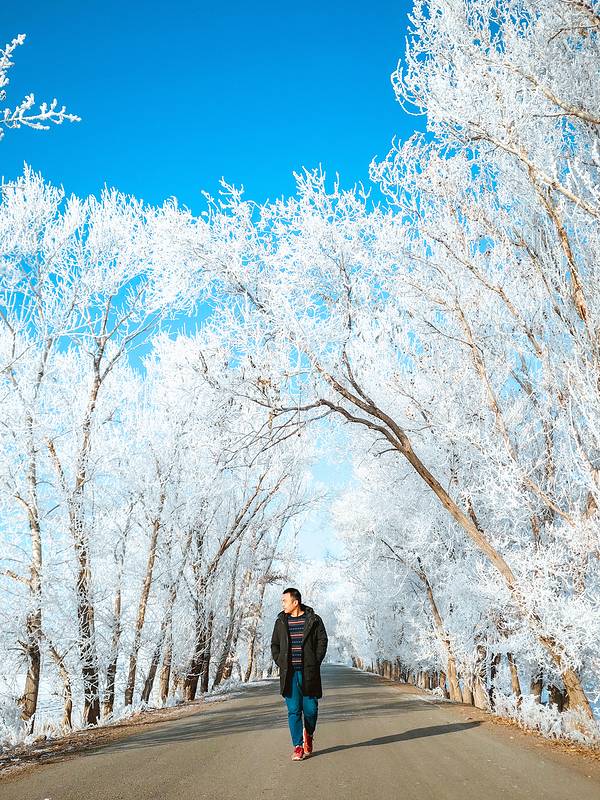 在离开新疆的前一天,本以为旅程即将结束的我却意外收到了两份临别的“礼物”。 第一件是足矣让人郁闷的“噩耗”,我们回程的航班被突然取消,而第二件则是瞬间让所有负面情绪瓦解的“惊喜”。 其实所谓的“惊喜”在一开始其实是无奈。 当天我们计划去离乌市三百公里的安集海大峡谷,早一点出发在那里看日出。可早上六点上路,大雾围绕,在黑暗中艰难前行了两个小时,天气始终没有好转,加之路上耗时太长,我们决定放弃,实施Plan B。 Plan B是参考网友的游记,一个距离乌市仅一个小时车程的秘境——努尔加大峡谷。 因为一路见过了太多震撼的景色,所以其实对努尔加并没有抱有很大的期待。而很多时候,不抱有太大期待总会有反转的惊喜,虽然毫无根据,却似乎是屡试不爽的剧情。 这一次亦是如此。非常的很神奇,在通向努尔加的路上,大雾逐渐散去,道路两旁的树上结满了雾凇,银树开了花,而即将破晓的天空有了奇异的色彩。驶入努尔加的乡道,早起上学的孩子们站在路边,或许是在等着校车,而打破宁静的闯入者瞬间吸引了大家的目光。实际上这次 新疆 之旅我们穿越了很多乡道,见到了很多孩子,对于彼此都是新鲜而好奇。我留意到这群穿着校服的孩子裤子上都缝着反光带,看来学校很用心,也不由感叹 新疆 的小朋友真辛苦,在如此寒冷的冬日,天不亮就得去上学。随着大峡谷越来越近,路变得崎岖狭窄起来,而天空有了更加丰富的色彩。此时一架飞机在天空划出了一条粉色的细线,而不远处正好有一个高耸的信号塔,远远看上去,仿佛一根线穿过了绣花针。因为大雪之后空气极其纯净,阳光放肆的在天空作画,一面是即将破晓的朝霞,另一面则是纯净的淡蓝色,而这中间居然夹着着一道若隐若现的紫光。继续前行,天空终于破晓,太阳为山峦披上了霞光。当我们进入峡谷,因为白雪的装点,本来色彩丰富的群山有了一种简洁而斑驳的美感。冬季的努尔加大峡谷,几乎没有游人,我们一不小心又包场了(此行去的很多景点我们都是唯一的游客)太阳升起,我们的影子被刻在了山体之上,如同一幅原始人的壁画。也只有无人机的视角才能展现出峡谷的壮美和多彩。视频转成动图加了速,别看太久会晕~因为打算利用下午的时间去看楼兰姑(nv)娘(shi),所以我们依依惜别努尔加大峡谷,打算返回乌市。 此时光线柔和,一切都显得如此干净而清新。雪地在阳光的照射下,有着一闪一闪如同钻石的光芒。路上偶遇的野骆驼,正在悠闲地晒着太阳。除了野骆驼,我们还发现了一个屁颠屁颠的小家伙,因为离得太远,夕阳同学的变焦手机派上了用场,但也只拍到了一个背影,看体型应该是一只兔狲~原路返回,原本平淡的景色成为了童话,宛如仙境。而银树开花的道路简直是神仙大道,湛蓝的天空赋予其灵气,这种感觉如同去年我看到开满樱花的树,有着同样不真实的美感。就在我们沉浸在难以名状的喜悦之中时,航班被取消的消息也同时到来,因为航班取消,我和夕阳不得不继续在乌市多呆两天半。 不过这并没什么好郁闷的,无论旅行还是人生,随遇而安才是一种最舒服的状态,而这两天正好让我趁着鲜活的记忆,好好整理思绪,来记录这段旅行,所以此时的我正在 乌鲁木齐 的宾馆里写下以上的文字,所想所感从未如此的新鲜。