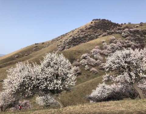 每年清明节前后,新疆伊犁哈萨克自治州的新源县新城附近不远的吐尔根乡野杏花沟变成了游客和摄影人竞相追逐的打卡胜地,相机架设的五花八门,无人机飞舞的漫山遍野,嗡嗡作响好似一群群野蜂在飞舞。今年我们赶在了4️3号杏花节的开幕当天来到了这里,果然不虚此行,看到了拍到了那么美的杏花和西天山河谷草原的美丽景色和风光,就是伊犁河谷内部交通限速和建设比较着急,路上很辛苦,算是对杏花的虔诚付出。