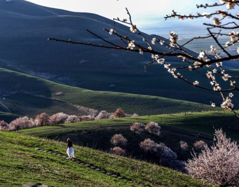 春回大地,新源吐尔根杏花如期而至,整个杏花沟的野杏花开得漫山遍野,粉粉的杏花在光影和山体间的线条补托下,如诗如画,有如婀娜多姿的妙龄女子在天地间轻纱曼舞。