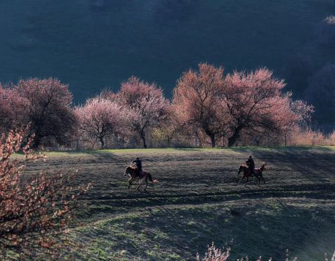 新疆著名的赏花圣地之一,这是一片中世纪遗留最大的原始野杏林,集中分布于巩乃斯河北岸