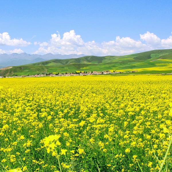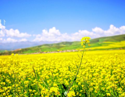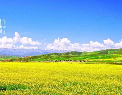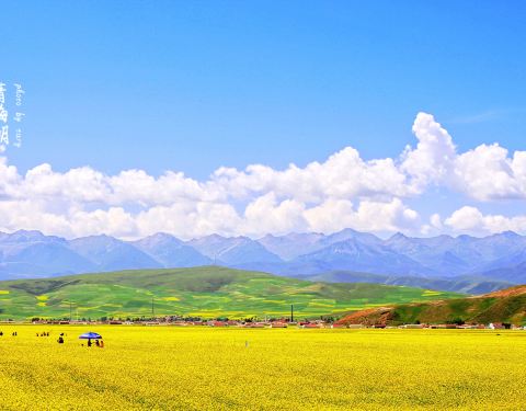 油菜花是青海省夏、秋季特别独特的花海美景!很多的游客在这里拍照留念,大片大片的油菜花田总是让人心情特别好!一望无际的黄色海洋,很壮观!