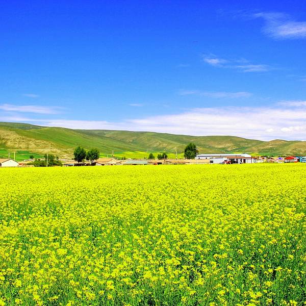 油菜花是青海省夏、秋季特别独特的花海美景!一望无际的黄色海洋,很壮观