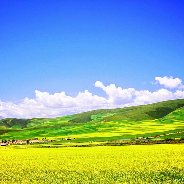 大片大片黄色的油菜花镶嵌在绿色的天地里,美不胜收,如同一幅巨大的画,同时更感叹中国的地大物博青海省的油菜花田实在太多了,面积非常广,景致壮观又漂亮!大片大片黄色的油菜花镶嵌在绿色的天地里,美不胜收,如同一幅巨大的画,同时更感叹中国的地大物博!