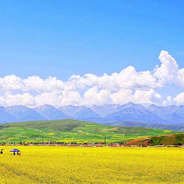 夏秋季自驾游青海省,到处都能看到大片大片的油菜花田,黄色的花海镶嵌在绿油油的世界里,非常的漂亮!在油菜花田里拍照的特别多,真的是好美的一道风景!