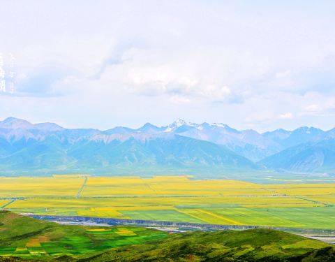 门源油菜花海修建了很多观景台,其中人气最高的就是达坂山观景台。在油菜花地里放肆玩后,回西宁的途中我们就经过了达坂山观景台。位于227国道旁,出亚洲最高的达坂山隧道不远就到,人气爆棚啊,从这里可以眺望著名的岗什卡雪峰,当然最大看点还是门源的百里花海。那一瞬间,当真是令人震惊,天地间一片金黄没有缝隙地连接在一起,虽然云有点暗,且自己摄影技术超烂,但油菜花却把世界照亮了。青海湖边上的油菜花都无法和这里相比,因为这里更胜在规模和气势。 七月的门源,百里长川,沿川漫坡覆盖着黄缎子般的油菜花,一片片金黄的油菜花犹如钱塘江潮水一浪接着一浪,与蓝天白云,远山村庄勾勒出一幅天然油画。门源观油菜花的最佳时间是7月中下旬,此时门源油菜花节与环青海湖国际公路自行车赛都是在七月份同步进行,看点多,活动多。