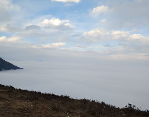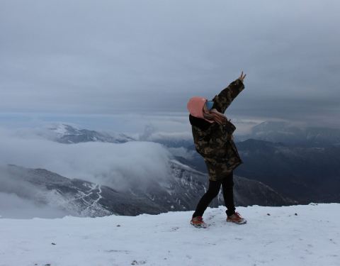 建议自驾游,车停到干海子停车场然后就爬山到顶两个小时左右,停车场老板山脚和山顶都有住宿,条件对比其他家挺好的,吃住在他们家,不用给停车费,老板人挺好的,住的通铺有电热毯可以充电、吃的是三荤三素。