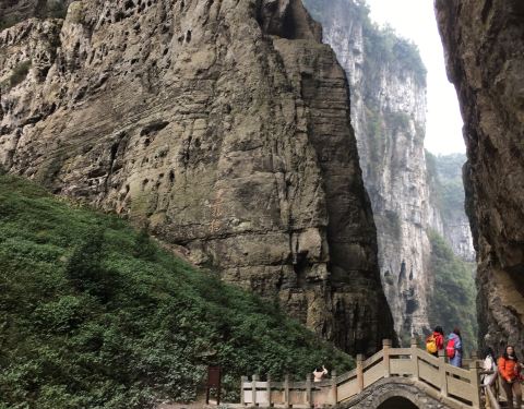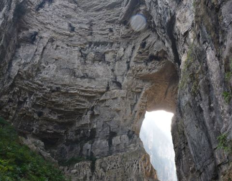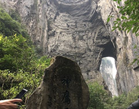 神鹰天坑是武隆天生三桥中的一个景点,是青龙桥和周围的石崖构成的一处天坑。 游客的步行道在坑底,网上看特别壮观。 青龙桥的桥洞,是一个大刀的形状,拍照挺有效果的。