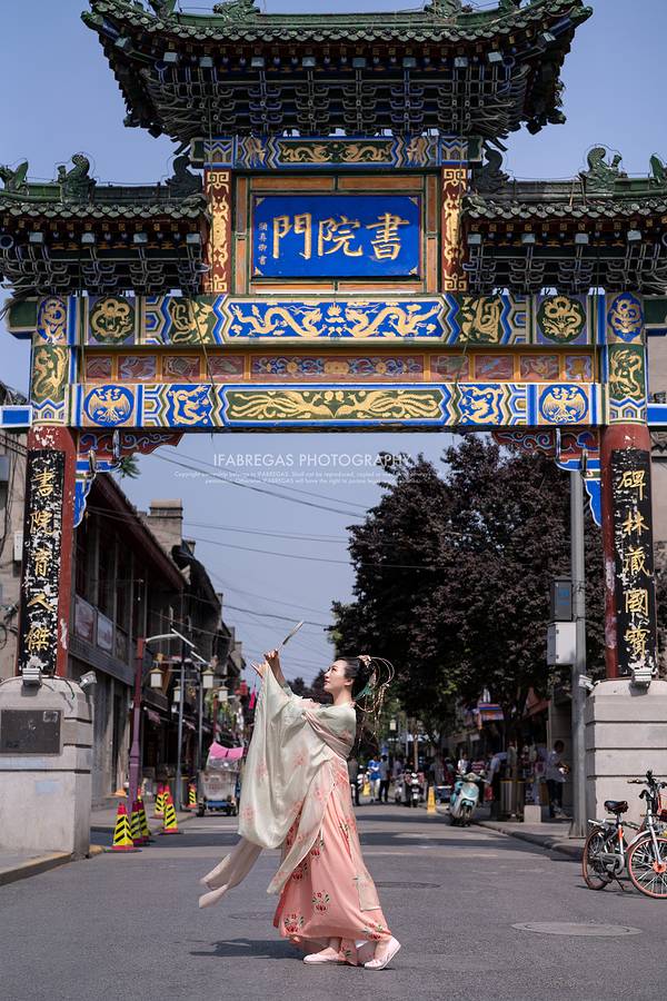 四四方方的城墙把西安围成四四方方的城,城里的东南西北端端正正,所以西安人指路总是爱说东南 西北 。正所谓“进了永宁门,就是西安人”,我们的旅程就从永宁门开始吧。 【永宁门——顺城巷——书院门——德福巷——城墙】 永宁门,本地人称为南门,即西安明城墙的正南门。来西安必来永宁门,这是“文化之门”也是“礼仪之门”。白天的永宁门辉煌庄严,到了晚上,属于它的重头戏就来了:享有“天下第一礼”美称的大唐迎宾盛礼《梦长安》的升级版《长安颂》上演,华丽震撼的场景,美轮美奂的服饰,动情专业的演员,都在向你诉说着属于盛唐的气魄和胸襟。 近些年,凡大型活动的重要嘉宾,来西安必来此,打开城门,一场国宾级迎宾盛礼等着你。作为小编+记者,潘奶奶来过几回南门的入城礼,每回虽都有采访任务无暇细赏,但都会被现场震撼。“落吊桥,开城门,迎贵宾……”听到这句话,就仿佛回到了那个一派盛世时代。希望有时间也可以去感受一下升级版《梦长安》。 潘奶奶和大湿来南门这天是个夏天的大中午,阳光实在是太太太太晒了,我们决定先去别的地方,等太阳小些了再上城墙。为了更符合城墙古朴庄严的色调,潘奶奶选了一套复原的唐制齐胸,妆娘小姐姐还给我戴了刚刚到店的网红发冠,哇这个发冠真是不得了,美是很美,重也是真重。自己选的发冠,沉死也要戴下去!顺着城墙根往东走不远,就是【碑林】。来碑林一定要找讲解,要不然都不知道碑林的“碑”字为什么少了一撇。对了,碑林里面还有网红猫咪,看看能不能偶遇啦。 从碑林出来可以去【书院门】逛逛。关中书院、于右任故居纪念馆就在这条街上,西口是唐宝庆寺华塔。据说在《古董局中局》里,北京潘家园的取景地就是这里,果然文物大省永远绕不开陕西。这条巷子里,文房四宝、篆刻印章、异木奇石、古玩玉器应有尽有,还有不少名人字画,但是这些名人字画是李逵还是李鬼,就不得而知了。总有一些有趣的角落等着你。运气好了还能碰见某音网红“扇子哥”。来了书院门一定不要错过“醉长安”,个人觉得这家是非常好吃的陕菜了,甩那些网红店好几条Gai。 【德福巷】 是一条只有不到200米的巷子,这条巷子虽然不大,在九十年代可是网红一条街。那时德福巷被打造成古色古香的一条旅游街,酒吧、茶馆、咖啡厅颇具文艺气息,当时来德福巷消费的大多是白领阶层。时代永远在向前迈步,曾经的繁荣渐渐消退,现在的德福巷远不及小寨、曲江商圈繁荣。只有在四年一届的世界杯夏夜中,德福巷才能恢复狂欢的呐喊声。平日里,它就这么安宁祥和地迎接朝阳与夕阳的更迭。西安人对茶文化是情有独钟的,处处有茶馆。福宝阁是早期西安名气很大的茶楼,典型的明清建筑风格。茶虽然好,但是潘奶奶一喝茶就睡不着,还是适合喝肥宅快乐水... 过了茶楼,就有一家撸猫咖啡馆,里面的猫猫都很可爱。这家店是拥有一颗少女心的潘奶奶的最爱,每年必来打卡。以前的店是粉色的,后来装修变成了现在的样子。其实粉色也不错的。古旧的牌楼和新潮的撞色,这条街换发着新的活力。路面上写着小文艺的歌词。很多拍婚纱照的情侣也会选择在这里取景。