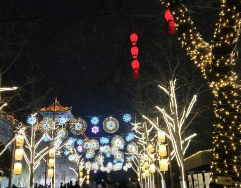 春节期间夜景灯光也不错。顺城巷位于西安市碑林区南门,可坐公交26、322路在南门站下