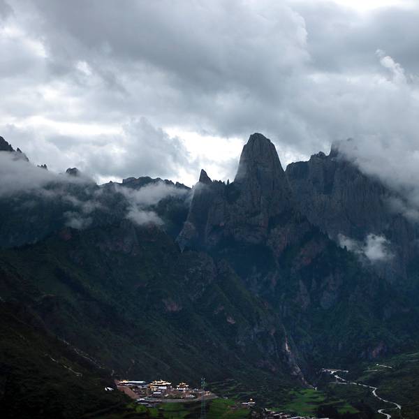 再上代巴村。这里是扎尕那四个村中最小的一个村子了,只有十来户人家。自拍~到此一游。这里的山体比其它如:黄山、华山等更显苍桑。群山环绕之地,就象一个盒子把四条小村盛在內边,所以有石匣子之称。当年,洛克正是站在这个地方一览扎尕那仙景,迷醉其中。