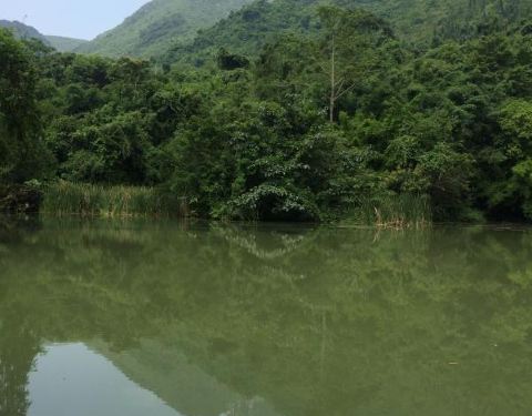 长青峡是黄果树七星桥景区一道很靓丽的风景线,在水中有很多干枯的石林,呈现黑褐色,但是上面长满了...