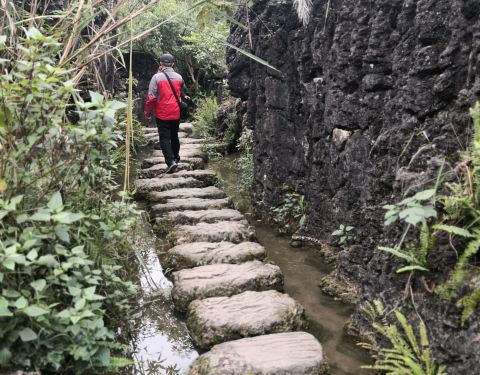 这座峡谷位于天星桥景区入口处,导游说它是由流水侵蚀火山岩而构成的,峡谷规模不大,内部相对比较窄,很多地方只容一人行走,整体环境还是不错的。