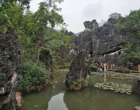 长青峡是黄果树大瀑布天星桥景区的前半段的一个看点,在许多石峰与水潭交错之际,游步道就在沿峡谷中曲曲折折的前行而去,二旁也长着各类的植物。