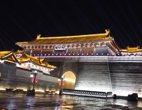 九楼四塔八大寺。九楼为四个城门楼、四个角楼和阳和楼。阳和楼经历过焚毁。现在阳和楼为重建。夜晚的阳和楼在灯光的映衬下美极了。
