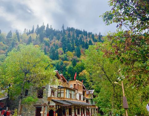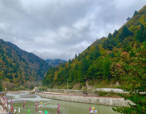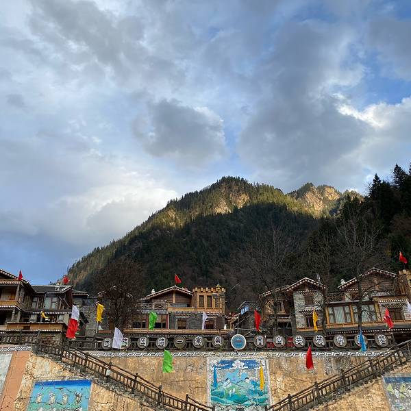 后面由于毕棚沟酒店的预订问题,我更改了第一晚和第二晚的住宿酒店。 第一晚我们住在羊绒哈德,羊绒哈德的意思是“神仙住的地方”😄真假无从取证!也有号称川西“小瑞士”夜晚的羊绒哈德更漂亮……