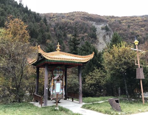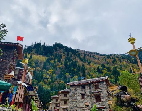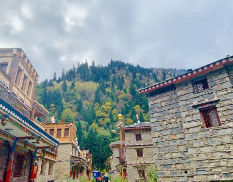 四川省阿坝州黑水县,沙石多乡八十里彩林区精品景点“落叶松林”中心区的羊茸哈德村,尽管是个人工景区,但配合着秋秀彩林环山背景,以及浓浓的藏族民俗民风,整体风景如画。 景区内有藏族风情的民宿,民宿外墙是...