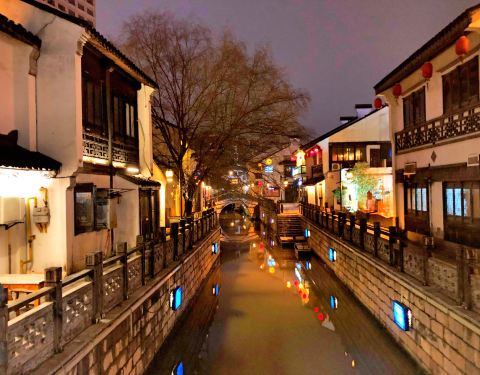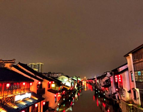 在品味楼吃完晚饭打算去叫车,没想到居然这里就是南下塘,误打误撞来了个景点,饭后散步正好逛逛哈! 越往前走越热闹,游客也越多,桥上人有点多,这桥走的我有点慌~ 不过总得来说这里还是比较安静的,而且很江南,很原汁原味,可惜天公不作美,下起了小雨,于是赶紧打车回酒店。
