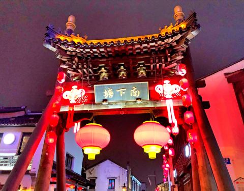 在品味楼吃完晚饭打算去叫车,没想到居然这里就是南下塘,误打误撞来了个景点,饭后散步正好逛逛哈