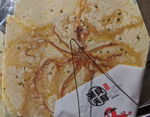 南下塘有一家神奇的骨纹网红店,仙贝,这是宜家海鲜骨文,将您喜欢的海鲜夹在脆饼中,形成类似甲骨文图案,蛮有意思的哦,小朋友很喜欢。