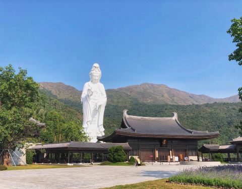 行程非常滿意,另人心曠神宜,寧静舒適! 還有中午免费香濃咖啡,甘甜茶点招待,實感心慰! 香港有這個地方,人人都应该去走走,感覺多麼幸福自由呢! 一个宁静、没有香火的环境 在慈山寺网站登记和确认后,到访当天乘坐大埔墟站往洞矽的小巴,在普门路下车,再步行上斜路约十五分钟便到达慈山寺。一个宁静、没有香火的环境,花上一个多小时参观钟楼、 鼓楼、 大雄宝殿、东和西塔,和最主要、七十多米高、青铜合金铸造的白观音圣像。首先要不厌其烦的预约。幸好网站对使用者还是相当友善。 好不容易能凑合一个适合的时间。 天气是第二个问题。天阴下雨故然有损游兴。若然烈日当空也挺难受。游学的规矩在网上已详列,大家都应遵守。看见有些衣着不庄之人,心里想到人家的地方也应份遵守人家的规矩吧。 地方很偏,要想好交通的问题。要是多人同往,更要处理好交通的事。 游园需要心静。赶时间或到此一游的心态将㑹是浪费游园的真正意义。最好是多预一小时去抄经。你㑹很享受这体验。