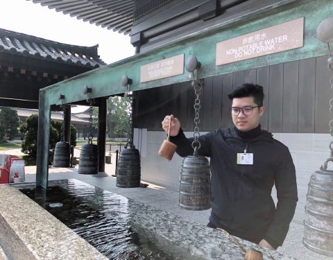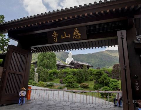 慈山寺位于香港大埔,依山傍水。工作人员柔声细语,有宾至如归的感觉。建筑仿唐代设计,木材用非洲紫檀木