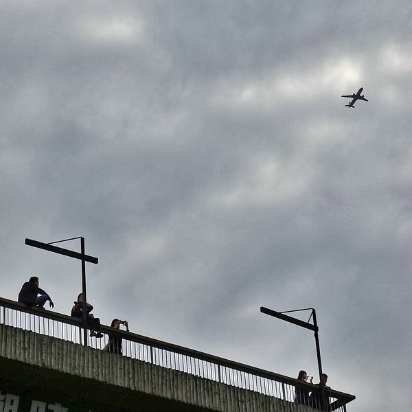 黑色的塑料跑道,360度无死角取景,画面干净现代 楼顶的观景台可以俯瞰整个西村,飞机必经航线,工业风与飞机很搭配