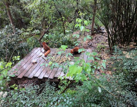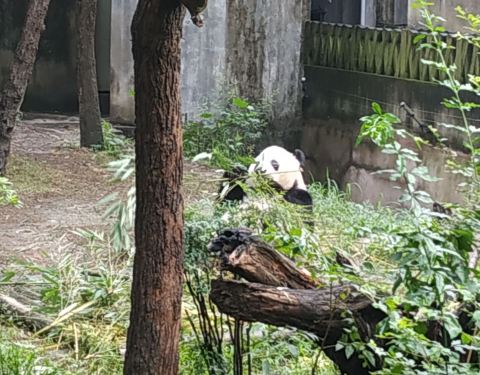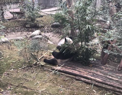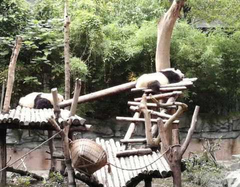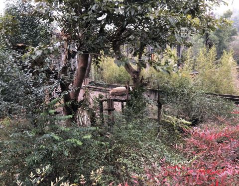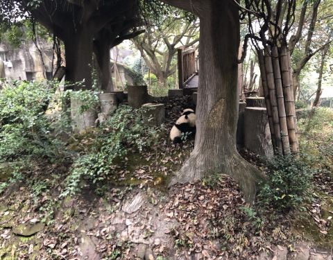进入成都大熊猫基地,顺着路标,就可以找到一号别墅。基地熊猫不少,状态也都不错。有的吃竹子,有的爬到树上睡觉,总之熊猫们都很惬意的。