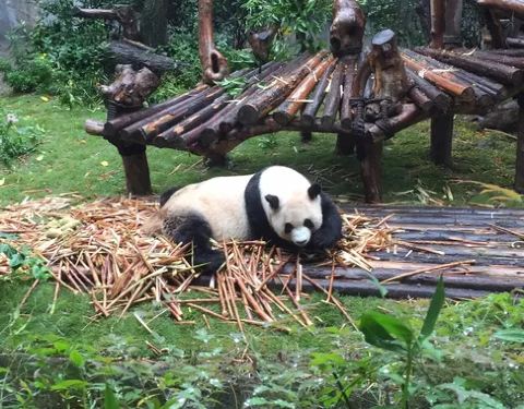 基地熊猫不少,状态也都不错。有的吃竹子,有的爬到树上睡觉,总之熊猫们都很惬意的进入成都大熊猫基地,顺着路标,就可以找到一号别墅。基地熊猫不少,状态也都不错。有的吃竹子,有的爬到树上睡觉,总之熊猫们都很惬意的。
