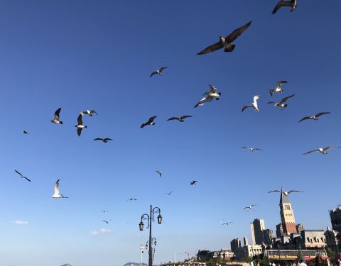 大连新建设的商务和住宅区,天气好的时候过来玩。海水和天真的很蓝,一瞬间有一种外国码头的感觉,可惜不能持久的保持住。海鸥也应景的在头上盘旋,作为游客的话还是值得来这边一看的。