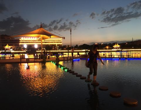 初见党河,十分惊讶,想不到在荒凉戈壁的的城市,居然有一条大河穿城而过入住敦煌,晚饭后闲来无事,出门溜达溜达,就走到了党河岸边。初见党河,十分惊讶,想不到在荒凉戈壁的的城市,居然有一条大河穿城而过。入夜,党河两岸景观照明更是惊艳,流光溢彩不输江南水乡,恍惚置身秦淮河...入住敦煌,晚饭后闲来无事,出门溜达溜达,就走到了党河岸边。初见党河,十分惊讶,想不到在荒凉戈壁的的城市,居然有一条大河穿城而过。入夜,党河两岸景观照明更是惊艳,流光溢彩不输江南水乡,恍惚置身秦淮河畔。岸边步道宽阔平整,照明充足,估计游客都奔小吃夜市去了,三三两两悠闲散步的大都是本地人吧,还有一些小孩子在嬉戏玩耍,一片祥和景象。 展开