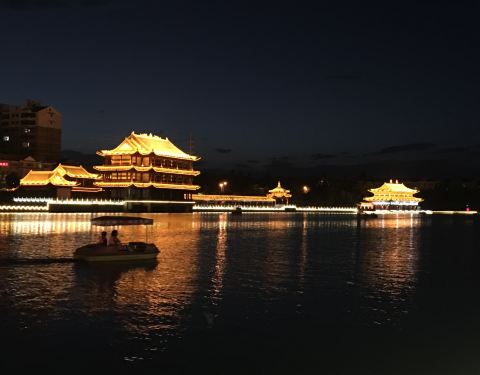 入住敦煌,晚饭后闲来无事,出门溜达溜达,就走到了党河岸边。初见党河,十分惊讶,想不到在荒凉戈壁的的城市,居然有一条大河穿城而过。入夜,党河两岸景观照明更是惊艳,流光溢彩不输江南水乡,恍惚置身秦淮河...