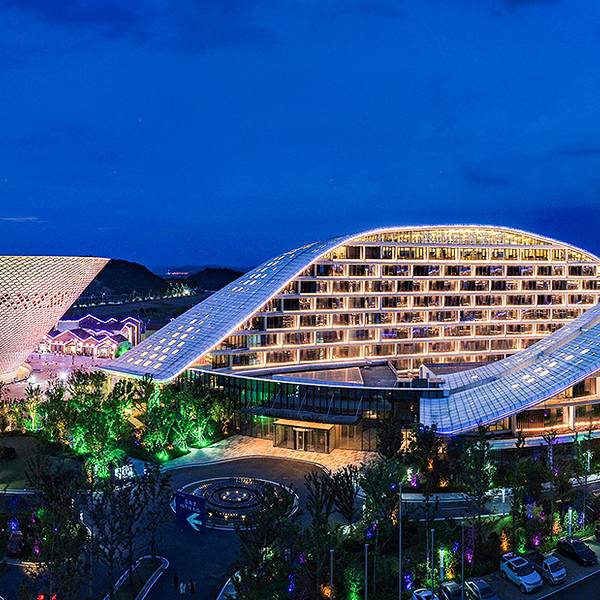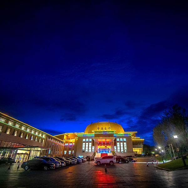 我在工业企业工作了一辈子,对厂房太熟悉了,也太热爱了。所以,当我在夜色中看到这些美丽的厂房,发自内心的想说声感谢——陶溪川,愿你永远灿烂。其实,景德镇夜色迷人的地方很多,除了昌江两岸,还有新晋网红地,大碗。其实,这里的名字叫昌南里。2000多年冶陶史,1000多年官窑史,600多年御窑史的历史文化之城,国际瓷都,地标怎少得了瓷器元素,这是景德镇的“魂”。其实,我这次住的紫晶宾馆夜色也很美,吃过晚饭,散步遛弯,发现夜色中的宾馆建筑散发着别样的妩媚。美其实无处不在,就在于我们以什么样的心情感悟她。